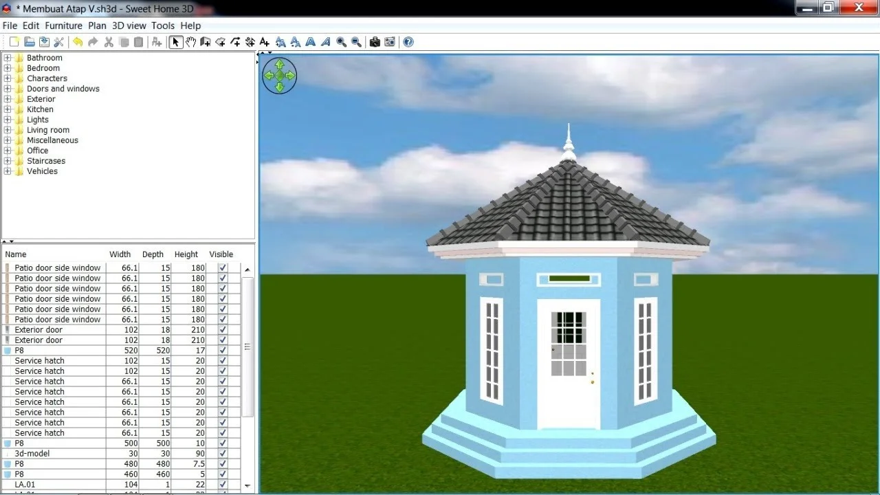 Sweet Home 3D — это еще один простой способ создать проект беседки 3Д, который отлично подходит новичкам. Проектирование таких построек осуществляется с использованием готовых моделей. Их можно найти в онлайн-библиотеке, созданной разработчиками. Добавьте беседку на виртуальный участок и измените ее параметры, материалы и цвета по своему вкусу.